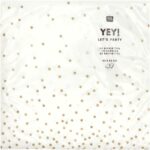 Mit den schönen Servietten von Rico Design krönen Sie die Tischdekoration Ihrer Party oder Familienfeier. Die goldenen Punkte machen aus der weißen Serviette einen echten Hingucker. Damit kann die nächste Party steigen, oder?!