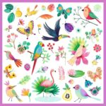 Dieses schönes Set von Djeco ist perfekt zum Basteln und Verschönern von Erinnerungsbüchern, Grußkarten und Bildern. Der Fantasie sind keine Grenzen gesetzt. Die zwei Bögen enthalten insgesamt 160 Aufkleber zum Thema Paradies – dabei sind Papagei, Faultier, Blumen, tropische Früchte und viele weitere farbenfrohe Motive.