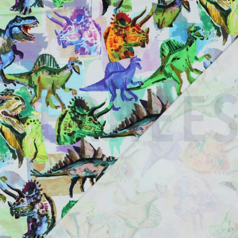 Dieser Sweat-Stoff in Weiß mit witzigem Dinosaurier-Motiv ist perfekt für Kinderkleidung, die Spaß macht. Die kuschelige Rückseite und der weiche Griff machen ihn ideal für Hoodies, Jogginghosen, Jacken und warme Kinderoutfits. Ein echter Eyecatcher für kleine Dino-Fans!