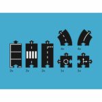 8 Kurven, 6 gerade Teile, 1 Kreuzung und 1 Kreisverkehr