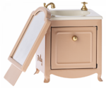 Spiegeln, Spiegeln an der Wand…. wer ist die putzigste Mäusenase im ganzen Land? Sperr die Lauscherchen auf, ob dir der Spiegel der Maileg Waschtischkommode antworten wird. Egal wie – ist er ein schöner Einrichtungsgegenstand für das königliche Badezimmer in deinem Maileg Mäuseschloss. Er hat einen kleinen Schrank unter dem Becken.