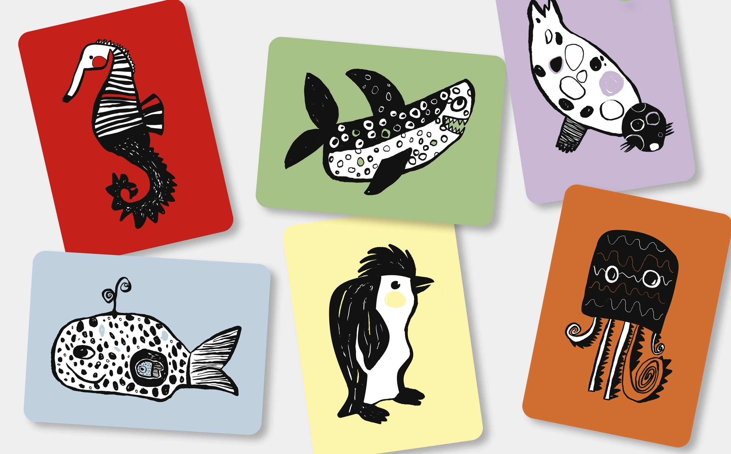 Babys sind fasziniert von Schwarz-Weiß-Motiven, denn so sehen sie zunächst, ganz ohne Farben. Daher sind diese Motivkarten von Wee Gallery  eine tolle Möglichkeit die visuelle Wahrnehmung deines Babys zu stimulieren. Zu den sechs niedlichen Tieren in diesem Set gehören eine Krabbe, ein Fisch, ein Oktopus, ein Seepferdchen, eine Schildkröte und ein Wal. Die Karten sind auf stabilem Karton gedruckt und halten den Entdeckungsreisen Ihres Babys stand.
