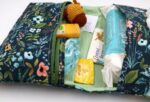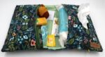 Unsere Windeltasche mit sieben Fächern für Alles was man im Alltag mit dem Baby braucht. Sie ist 26x28cm (aufgeklappt) groß.