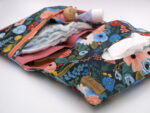 Unsere Windeltasche mit sieben Fächern für Alles was man im Alltag mit dem Baby braucht. Sie ist 26x28cm (aufgeklappt) groß.