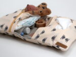 Sobald sich Nachwuchs ankündigt, stellt sich die Frage der notwendigen Erstausstattung. Die Windeltasche von LottiKlein ist die perfekte Alternative zu großen sperrigen Wickeltaschen und dadurch das perfekte Geschenk zur Geburt oder zur Taufe. Die Tasche bietet Platz für Windeln, Feuchttücher, Nuckel, U-Heft, Wickelunterlagen, das Lieblingsspielzeug des Babys und vieles mehr. Außerdem kannst Du die Wickeltasche blitzschnell mit dem angebrachten Gummiband verschließen. Du kannst die Windeltasche nach Belieben individualisieren lassen. Hierzu wird der Name des Kindes mit Holzwürfeln auf das Verschlussband gezogen.