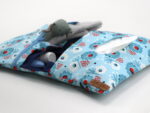 Unsere Windeltasche mit sieben Fächern für Alles was man im Alltag mit dem Baby braucht. Sie ist 26x28cm (aufgeklappt) groß.
