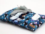 Sobald sich Nachwuchs ankündigt, stellt sich die Frage der notwendigen Erstausstattung. Die Windeltasche von LottiKlein ist die perfekte Alternative zu großen sperrigen Wickeltaschen und dadurch das perfekte Geschenk zur Geburt oder zur Taufe. Die Tasche bietet Platz für Windeln, Feuchttücher, Nuckel, U-Heft, Wickelunterlagen, das Lieblingsspielzeug des Babys und vieles mehr. Außerdem kannst Du die Wickeltasche blitzschnell mit dem angebrachten Gummiband verschließen. Du kannst die Windeltasche nach Belieben individualisieren lassen. Hierzu wird der Name des Kindes mit Holzwürfeln auf das Verschlussband gezogen.