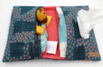 Unsere Windeltasche mit sieben Fächern für Alles was man im Alltag mit dem Baby braucht. Sie ist 26x28cm (aufgeklappt) groß.